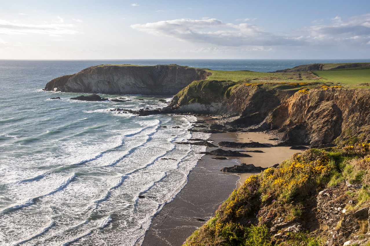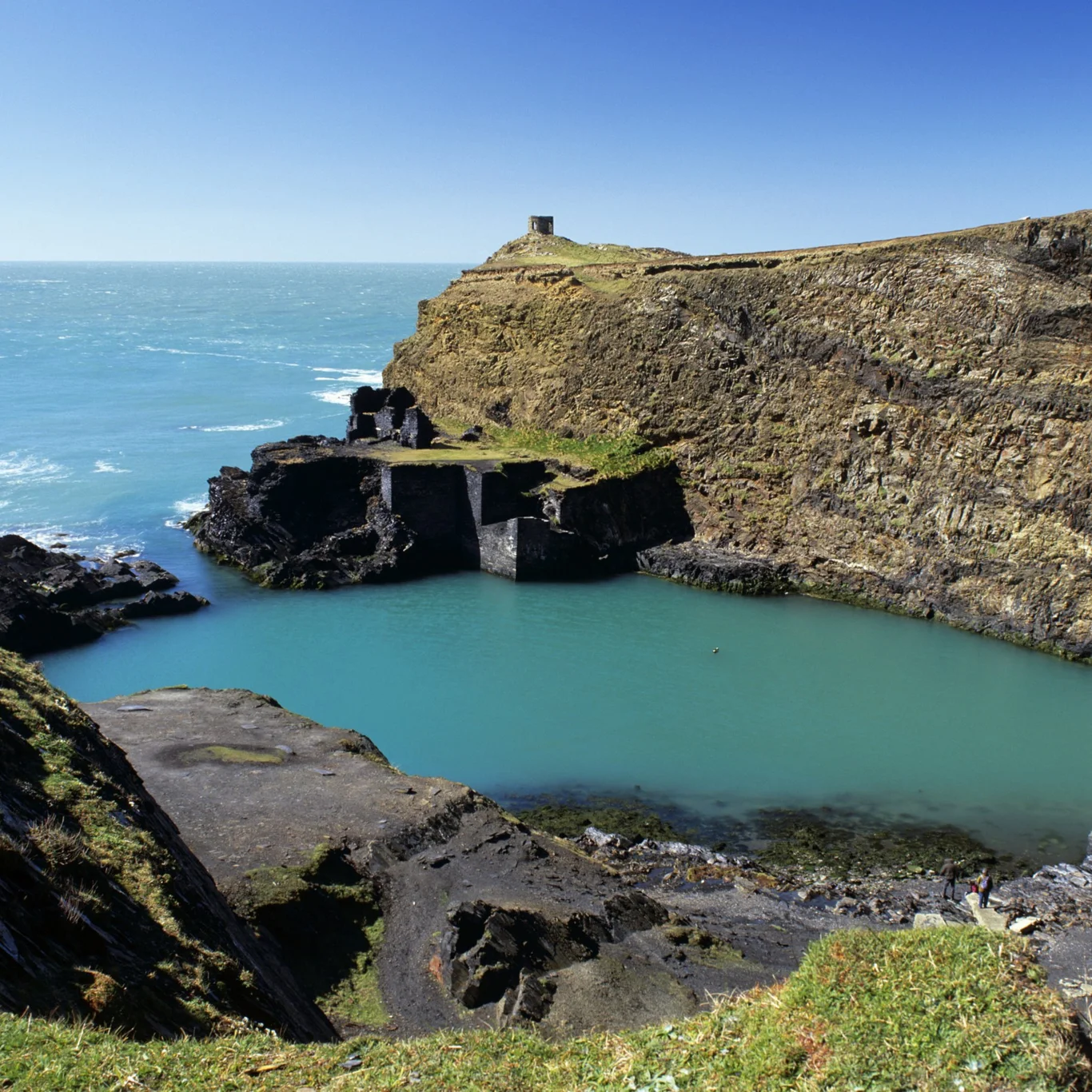 Soon you link with Pembrokeshire’s narrow, hedge-lined coastal lanes. The road rises and falls through Abercastle and Trefin, then onwards to Abereiddi Bay, where a short detour takes you to the Blue Lagoon – a striking blue-green pool carved from an old slate quarry and now a favourite spot for swimmers and cliff-jumpers.