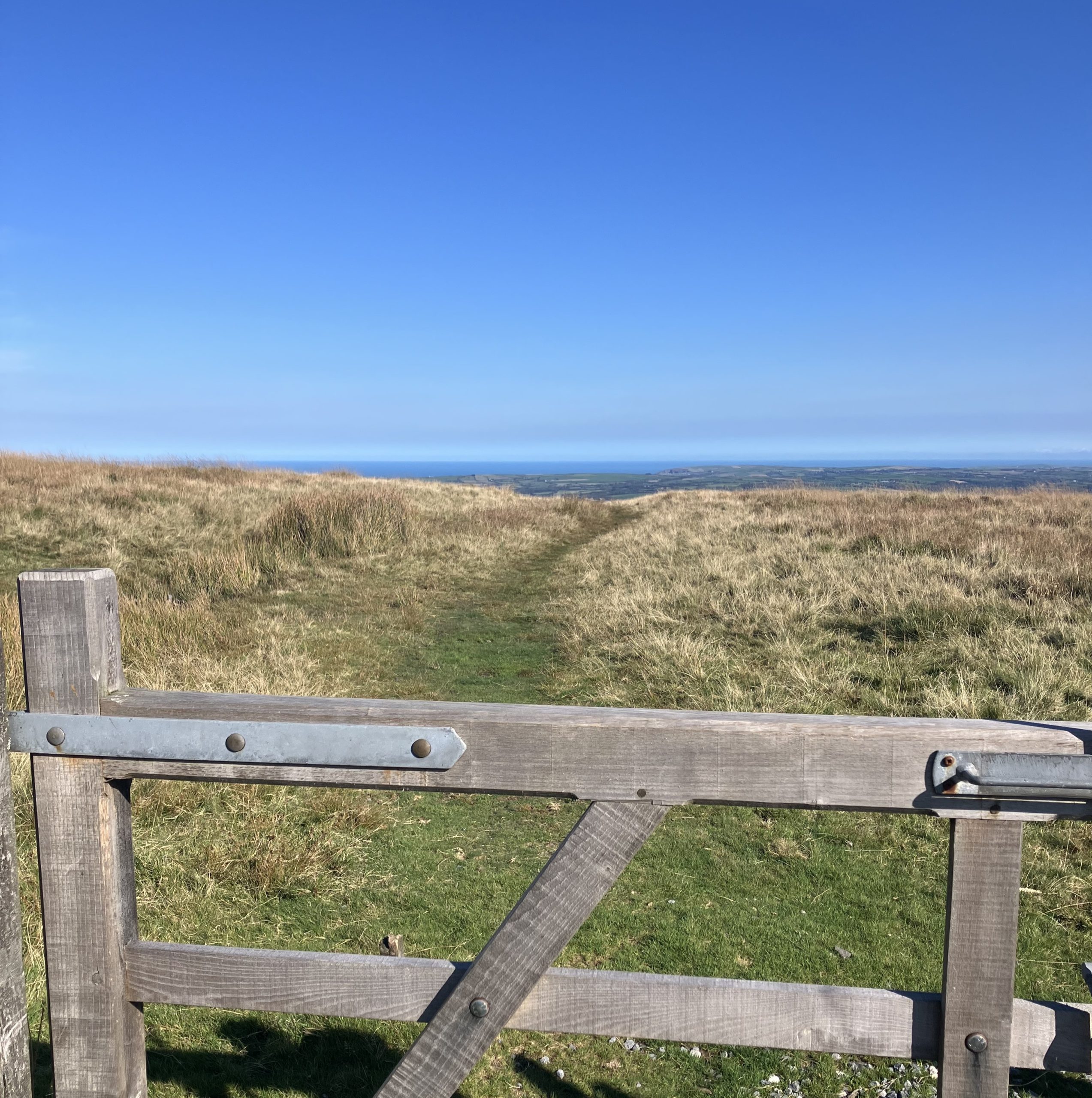 A quick café stop in Maenclochog breaks up the climb, then it’s back onto gravel as the route heads into Pantmaenog Forest. The trees thin, the horizon opens, and soon you crest the Preselis for your first view of the Pembrokeshire coast, shimmering in the distance on a clear day.